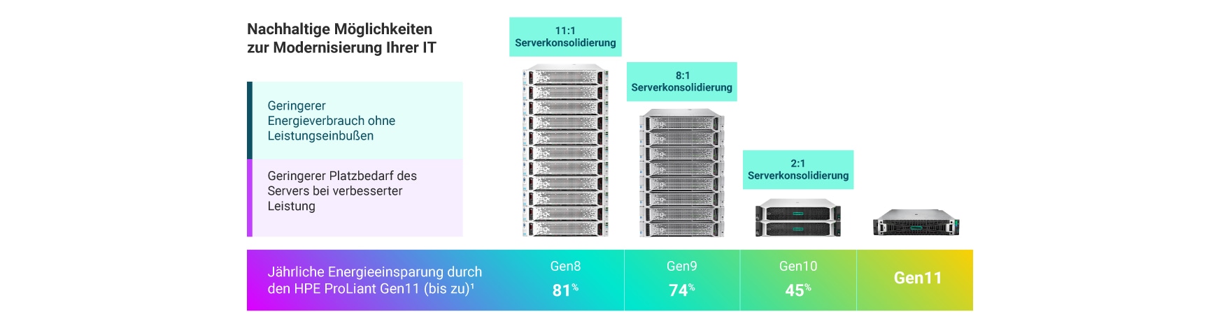 kleinerer Platzbedarf im Rechenzentrum und 81 % geringere Strom-/Kühlungskosten im Vergleich zu veralteten Servern