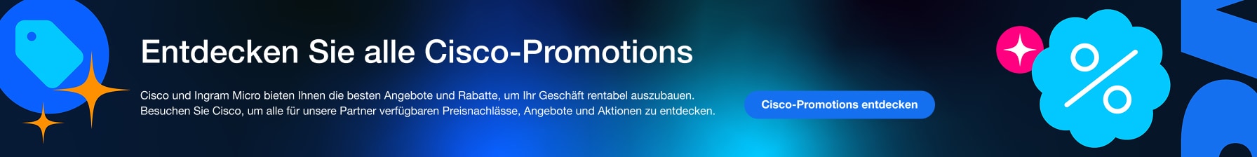 Nutzen Sie die neuesten Cisco Networking-Promotions, um Kunden beim Aufbau sicherer, robuster Netzwerke zu unterstützen und Ihren Umsatz zu maximieren.